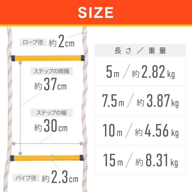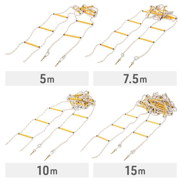 5m 7.5m 10m 15m 耐荷重 150kg 火事 持ち運び 軽量 丈夫 ステップ 地震対策 防災グッズ 安全 アウトドア 防災グッズ 避難ロープ 縄 二階 三階 戸建て マンション