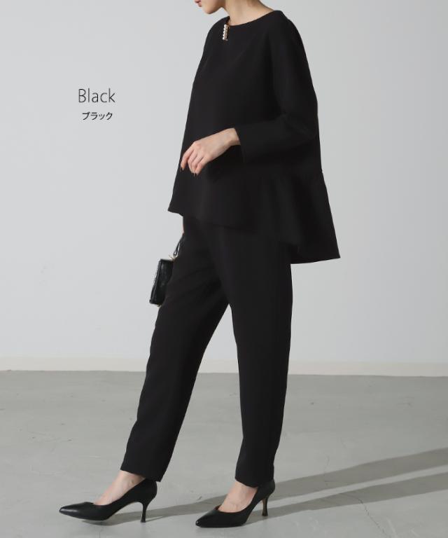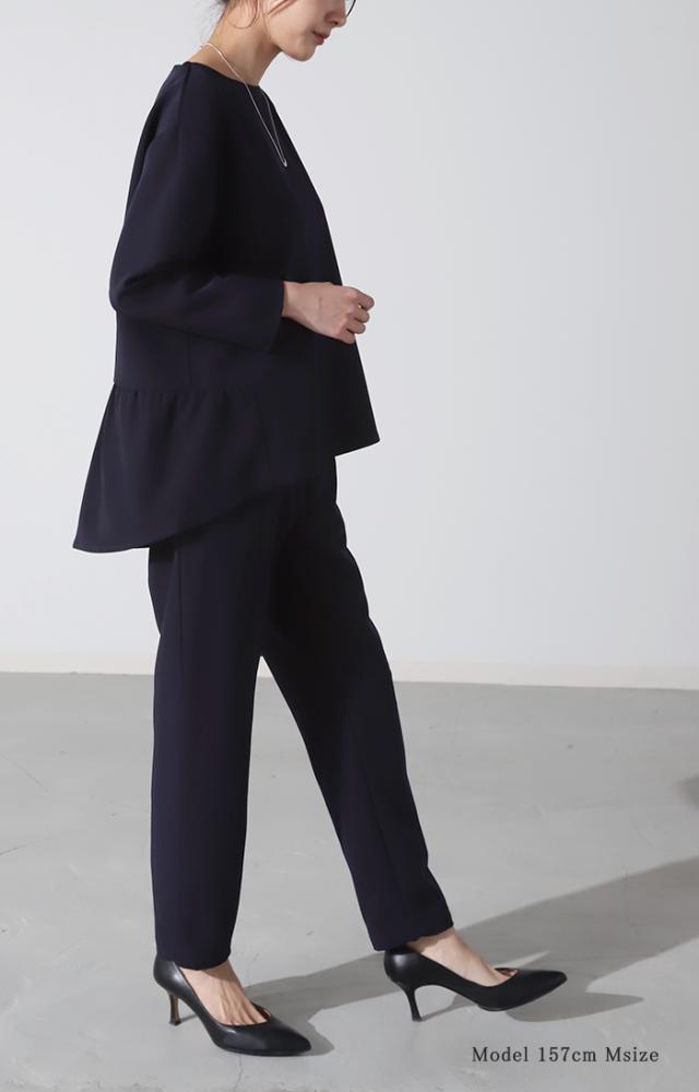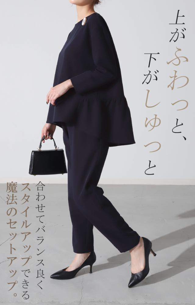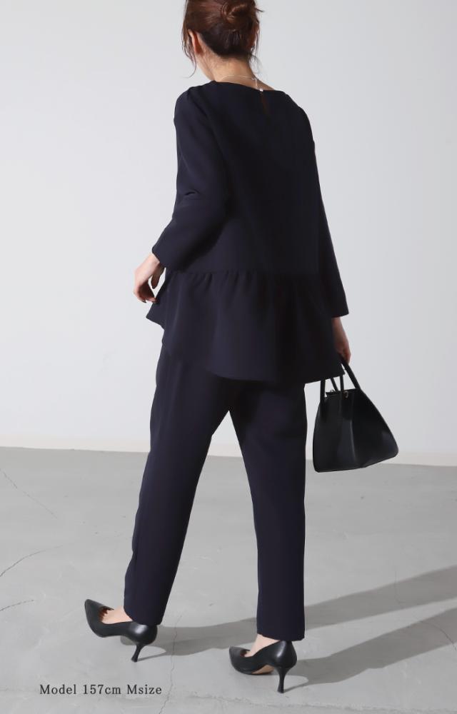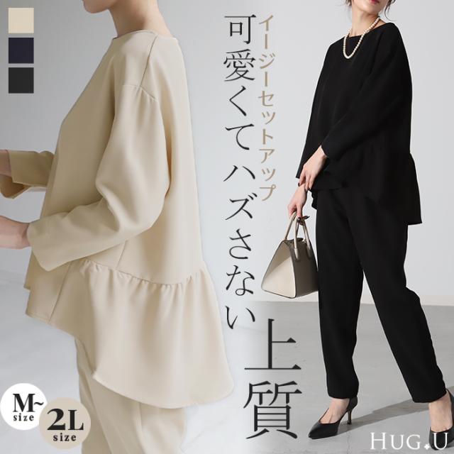 フォーマル 2点セット パンツ トップス 体型カバー レディース パンツスーツ スーツ セットアップ バックフリル 入学式 卒業式 セレモニースーツ オケージョン レディーススーツ 母 ロング ずぼん ママ ママスーツ 大きいサイズ 紺 黒 春 冬 HUG.U 秋新作