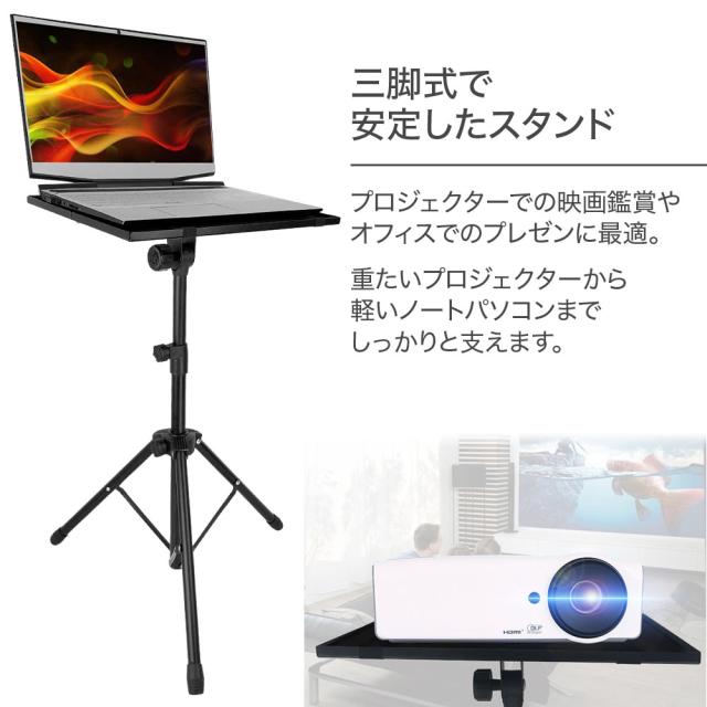 プロジェクタースタンド プロジェクター台 折りたたみ タブレット 三脚 軽量 コンパクト 照明スタンド ブラック 約55cm〜87cm 高さ調整機能 プロジェクター ノートパソコン スタンド 消毒液台 送料無料