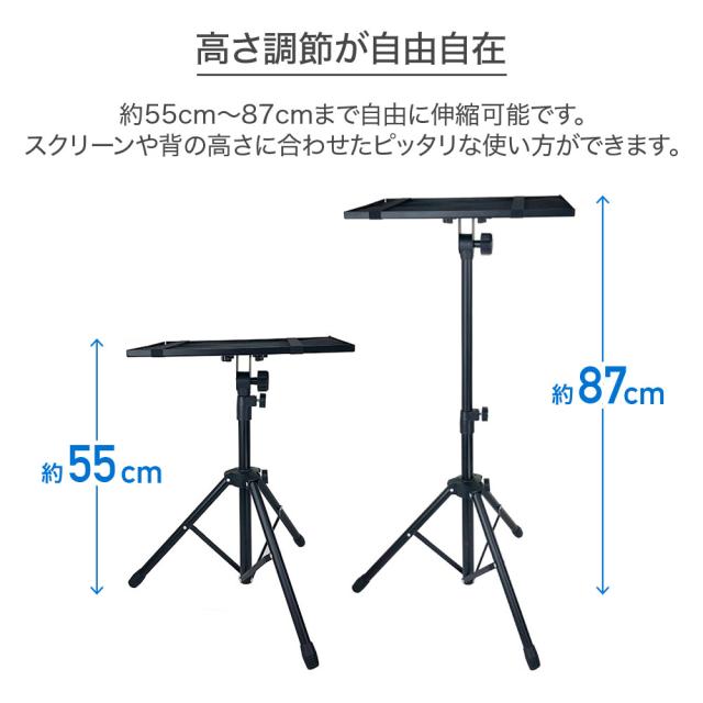 プロジェクタースタンド プロジェクター台 折りたたみ タブレット 三脚 軽量 コンパクト 照明スタンド ブラック 約55cm〜87cm 高さ調整機能 プロジェクター ノートパソコン スタンド