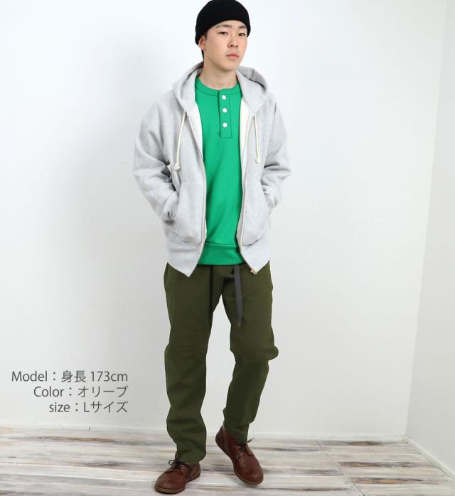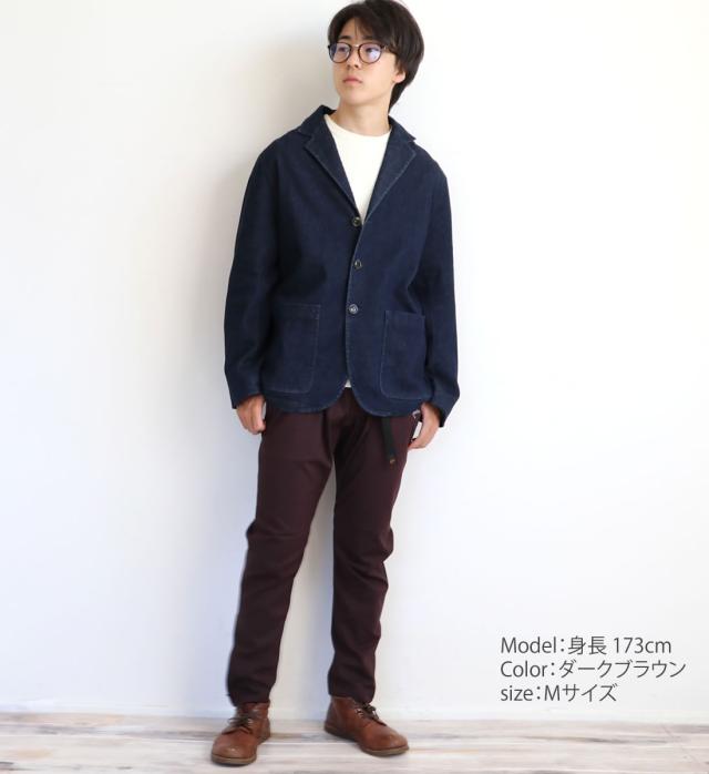 しなやかな肌触りと光沢感のあるコットンに、強度と速乾性に優れたナイロンをミックスした生地はストレッチ性も備えており、裾に向かってテーパードするスリムなシルエットにもかかわらず、窮屈さはなく快適な吐き心地をキープ。