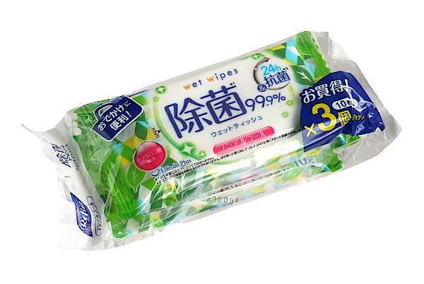 ウェットティッシュ、10枚×3個入りです。