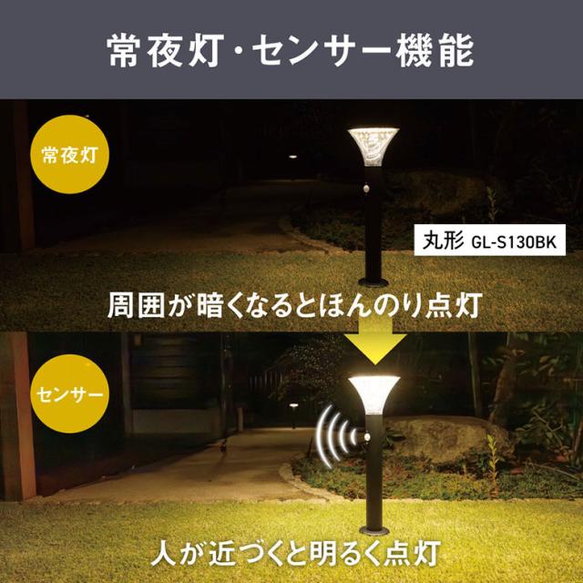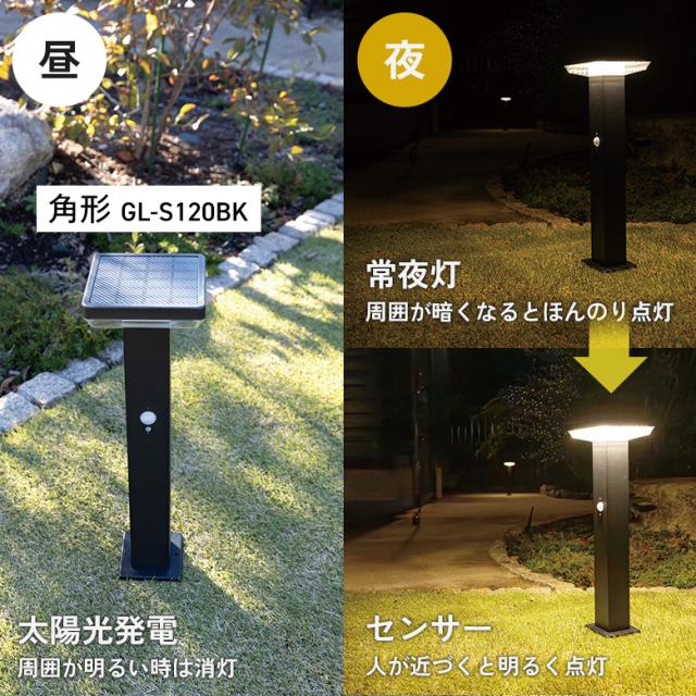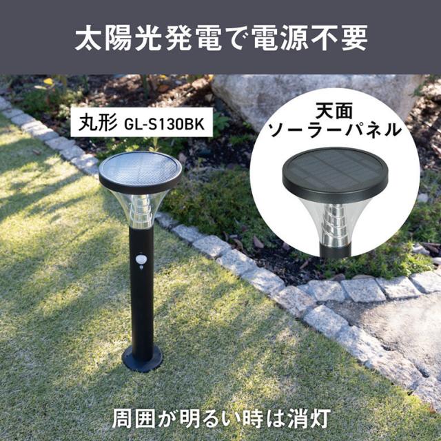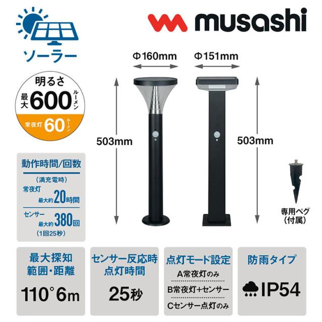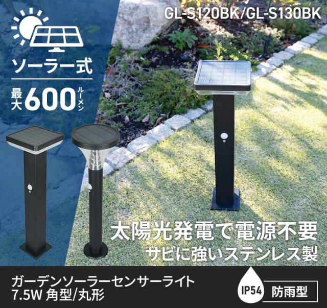 【46%引き】 ムサシ ガーデンソーラーセンサーライト 7.5W 角型/丸形(GL-S120BK/GL-S130BK) ポール型 ソーラー式 ガーデンライト ソーラーライト 屋外照明 庭 屋外 省エネ エコ 自動点灯 消灯 太陽光発電 明るい おしゃれ ライトアップ