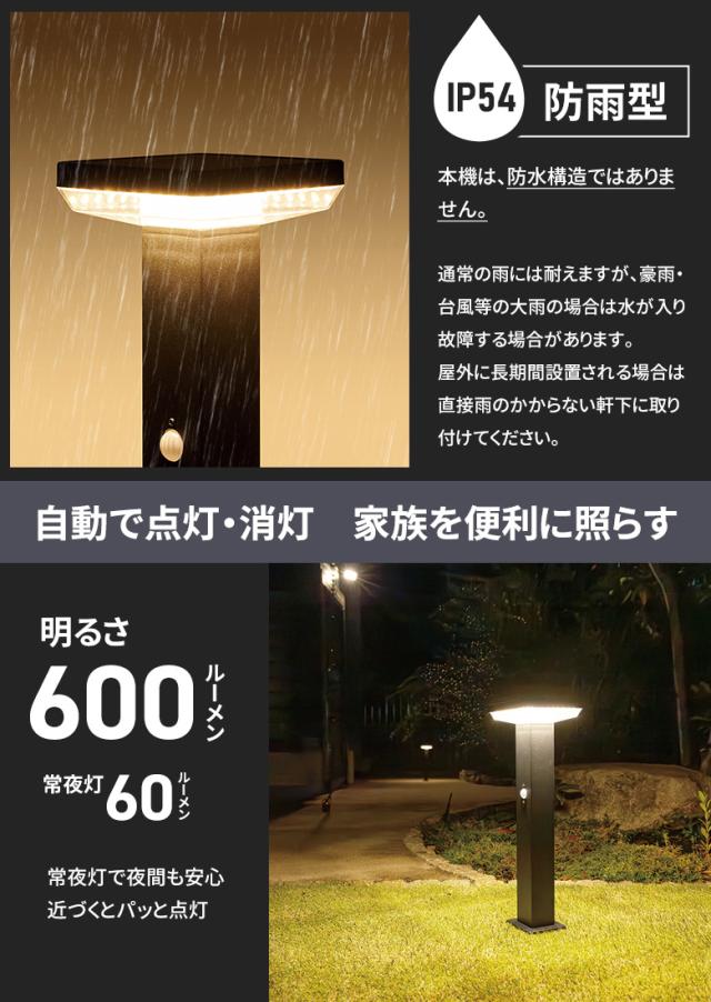 全光東:600ルーメン(Cモード/センサー探知時)、240ルーメン(Bモード/センサー探知時)、60ルーメン(Aモード・Bモード/常夜灯)