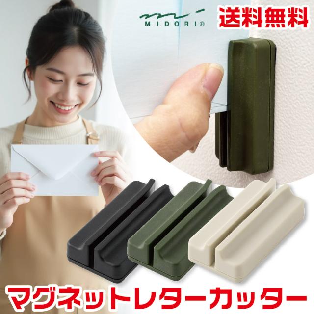 ミドリ マグネットレターカッター デザインフィル みどり レターオープナー おすすめ 使いやすい ギフト プレゼント 高級 ノベルティ 安全 ブラック ベージュ カーキ 文具 文房具 事務用品 片手で簡単 開封 オフィス 封筒 開封 お手紙 冷蔵庫 てがみ カット 通販