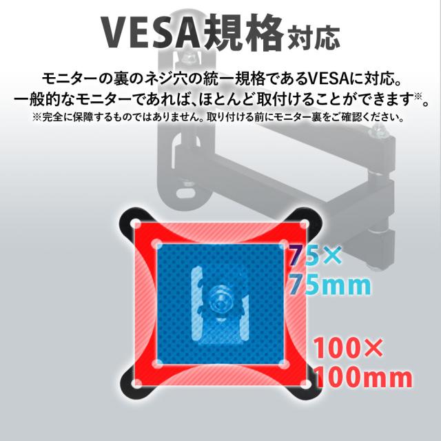 モニター裏のネジ穴の統一規格であるVESAに対応。