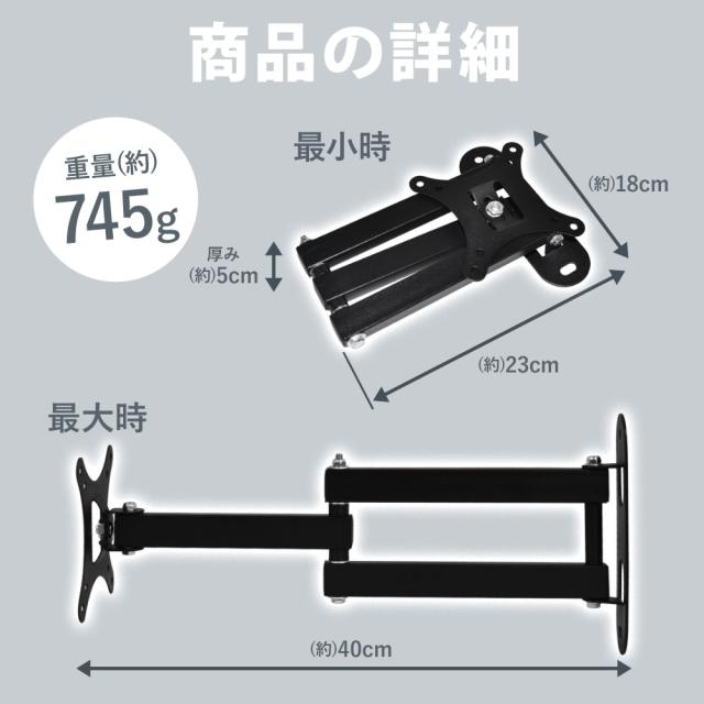 テレビ 壁掛け 金具 アーム 10 〜 30型 対応 VESA 規格 角度調節 アーム式 壁掛 壁掛け金具 液晶テレビ プラズマテレビ TV ブラケット テレビ台 キット モニターアーム モニター PC パソコン TV ディスプレイ