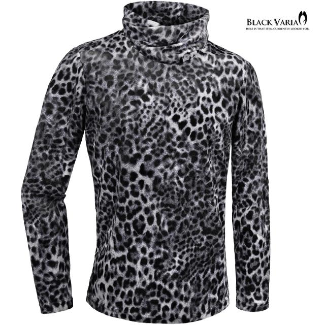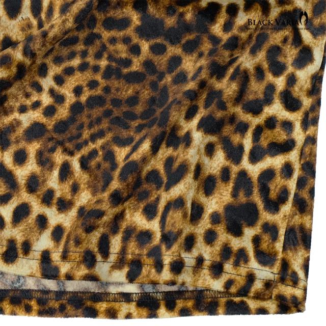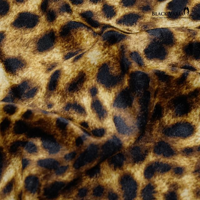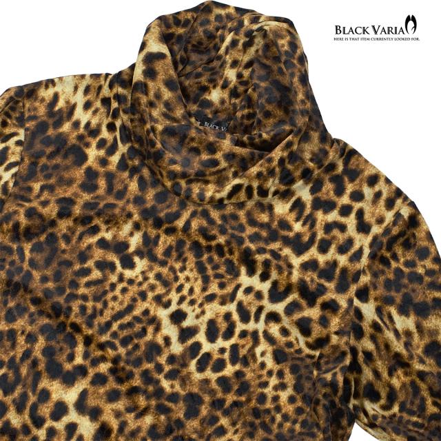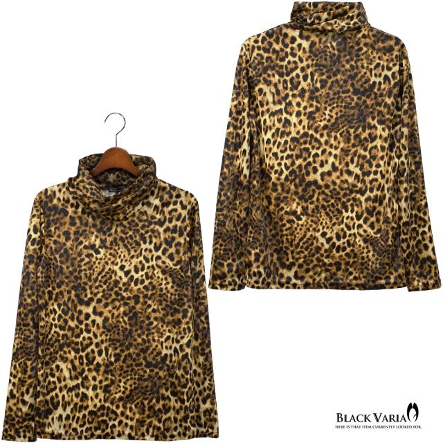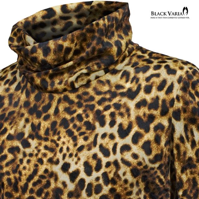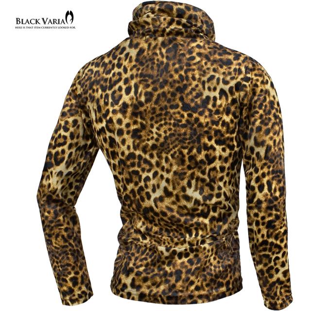 タートルネック ねじれ襟 くしゅくしゅ 豹柄 ベロア レオパード柄 メンズ 長袖 ストレッチ mens(イエロー黄ブラウン茶) 233700