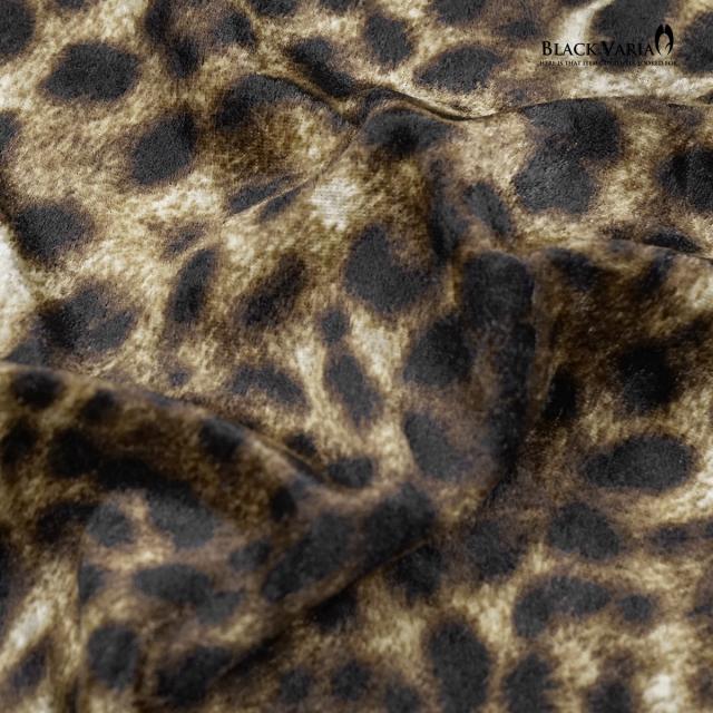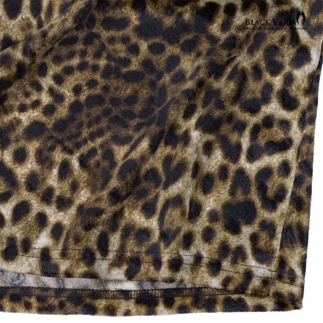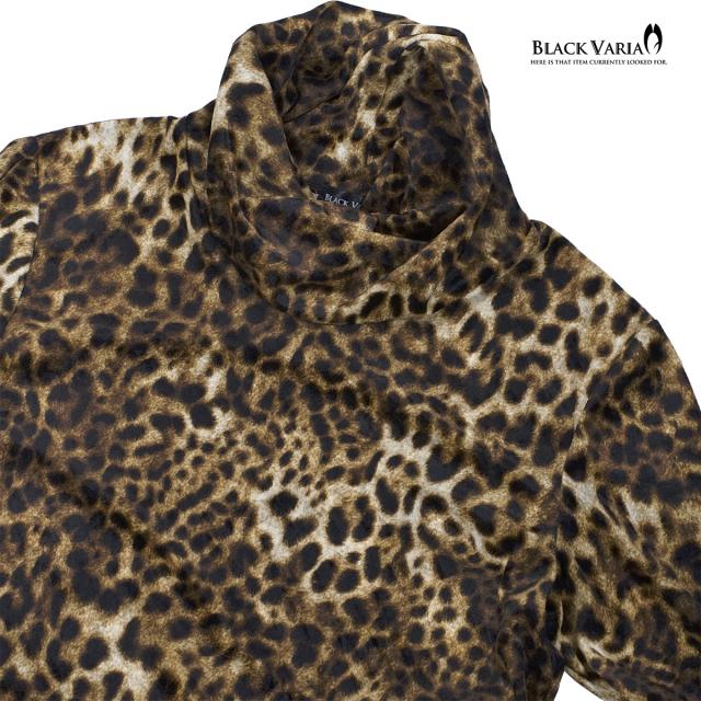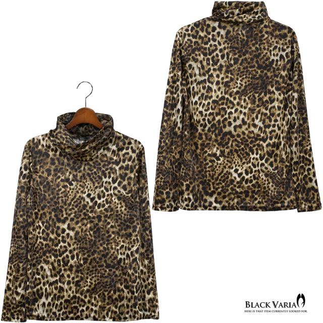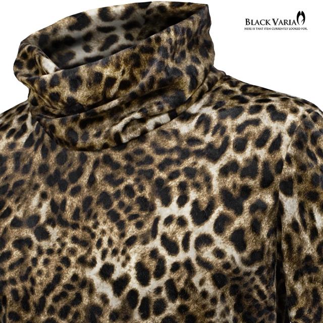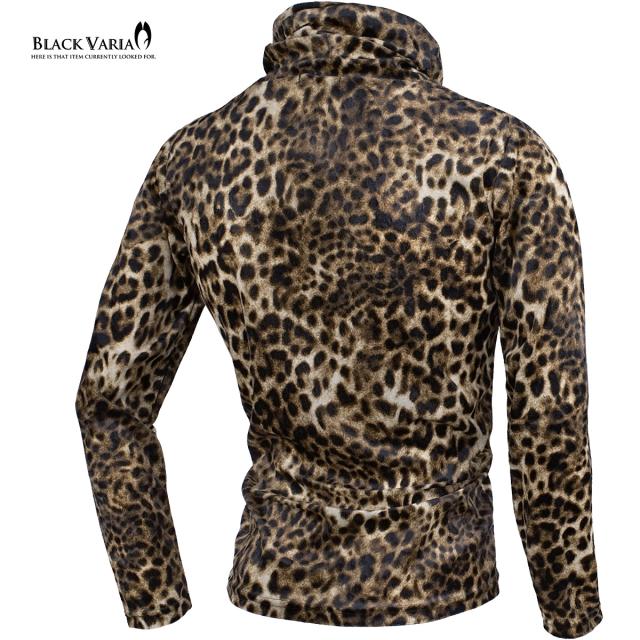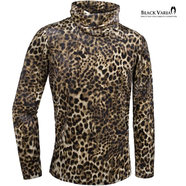タートルネック ねじれ襟 くしゅくしゅ 豹柄 ベロア レオパード柄 メンズ 長袖 ストレッチ mens(ダークブラウン茶ブラック黒) 233700