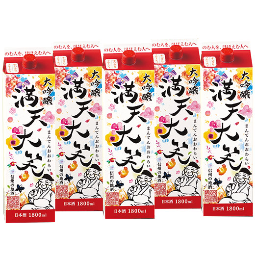 日本酒 大吟醸酒 大吟醸 満天大笑 1.8L パック 5本組 1800ml 5本 送料無料 お中元 敬老の日 父の日 ギフト プレゼント