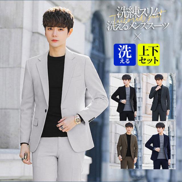 【~4/20まで P2倍+限定クーポン】 スーツ メンズ ビジネススーツ スリム 秋冬 春夏 40代 30代 50代 20代 セットアップ 上下洗える ストレッチ素材 紳士 結婚式 卒業式 10倍ポイント 送料無料