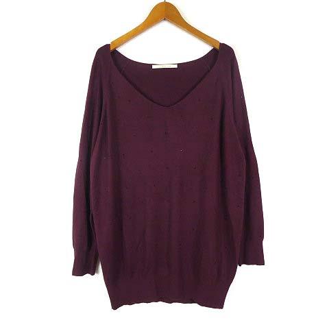 【中古】ジュエリウム JEWELIUM ニット セーター ラインストーン 装飾 Vネック 長袖 M ボルドー レディース