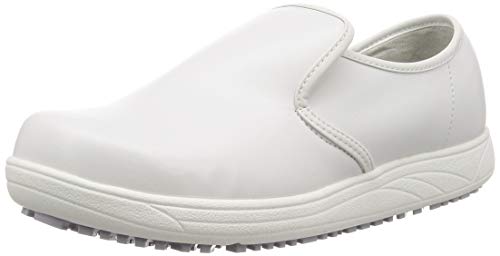 商品紹介 レストランや厨房、食堂などで働く方におすすめのスリッポンシューズです。 アッパーの耐油・防水素材に加えて、凹凸を付けたアウトソール意匠と特殊ラバー配合で耐油性を高め、ステンレス床面にも対応しています。 弾力性のあるインソールとアウトソール意匠が快適な歩行をサポートします。 デザインはシンプルながらも機能と履心地にこだわったクッキングメイトならではの1足です。 ※ 2020年8月分より順次、中国製からベトナム製へ移行致します。 ブランド紹介 【ACHILLES / アキレス】 シューズやゴムボートなどの日用生活用品から、住宅資材や車両資材などの産業資材に至るまで、多彩な製品を世界に送り出しているアキレス。 その起源は、創業者である殿岡利助が1907年に設立した織物の製造販売会社殿利織物会社です。 利助はゴム製品の製造にも着手し、1945年の終戦と同時に、布靴、総ゴム靴、 ゴム引布や合成樹脂製品の製造にも取りかかります。 1947年には興国化学工業株式会社を設立し、本店を東京都中央区日本橋に、工場を栃木県足利市に置いて本格的にゴム製品の製造販売を開始しました。 やがてゴム製品の製造が靴事業の発展につながり、アキレスの靴はその品質の高さに基づく確かな性能で多くの人から信頼と支持を得ていきます。 近年では左右非対称ソールによるグリップ力で速く走れる子供向けシューズ“シュンソク”が爆発的な大ヒットを生み、社会現象を巻き起こしました。 また、独自のスーパークッションを搭載した大人向け高機能シューズ“アキレスソルボ”も話題を呼び、アキレスの人気はさらに高まりを見せています。 アキレスが目指す靴づくりのテーマは、“感性と技術の融合”=“機能美の創造”。 もっと気持ち良く、もっと美しく歩きたい。もっと速く走りたい。靴に求める夢は履く人によってそれぞれ違います。 どんなに技術をもってしても、履く人の感性に融合しなければその靴の価値はありません。 機能やファッション性が優れているだけでなく、体と心に合った靴を生み出す技術、それが機能美という新たな価値を生み出し、履く人の心をひきつける。 アキレスはその思いを込め、見た目の華美さだけではない、本質の美しさを持った靴を作り続けていきます。