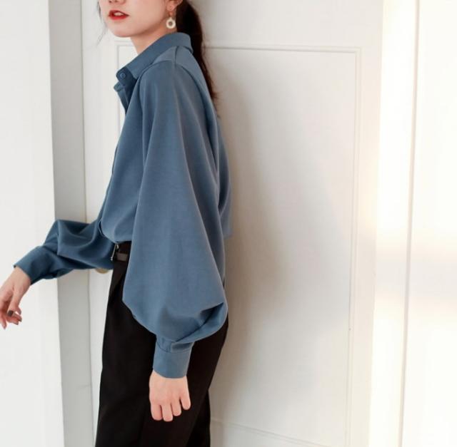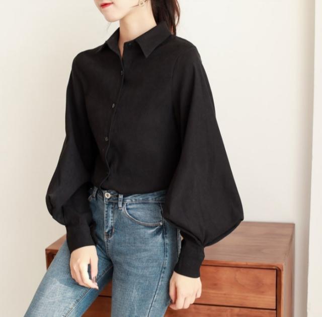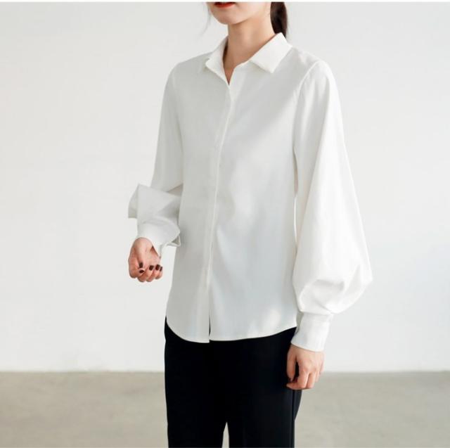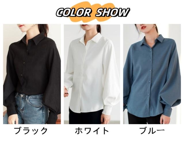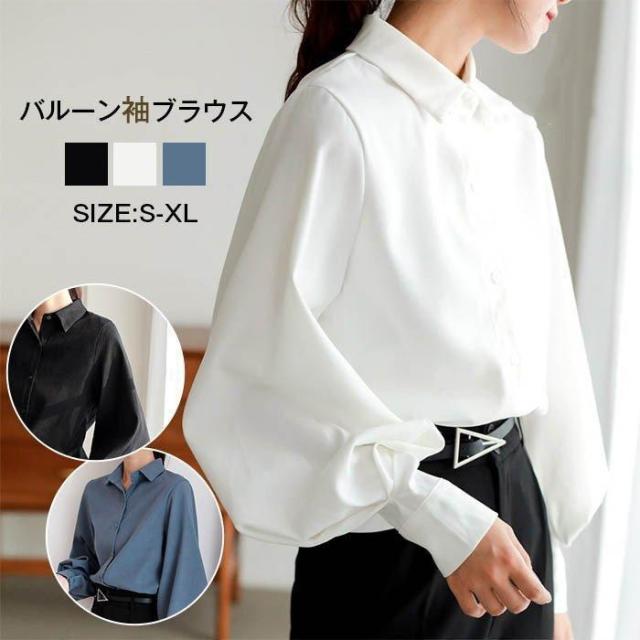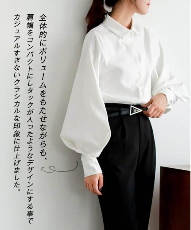 シャツ ブラウス レディース 長袖 バルーンスリーブ ボリューム袖 襟付き アウター カーデガン 大人 小きいサイズ 体型カバー 春夏