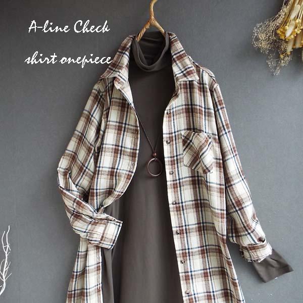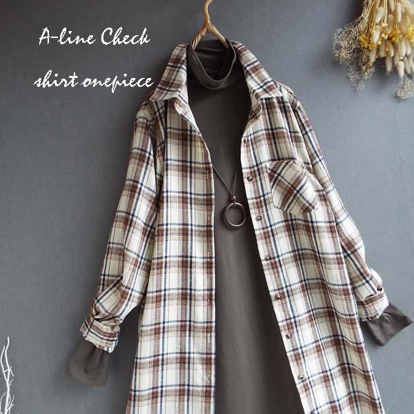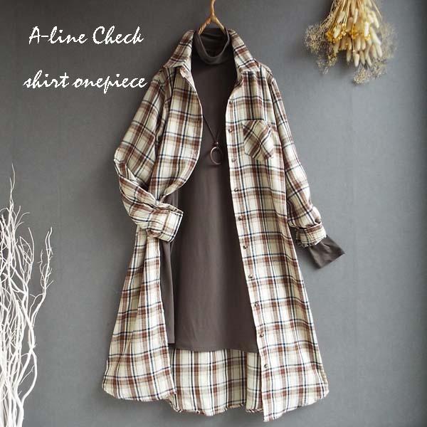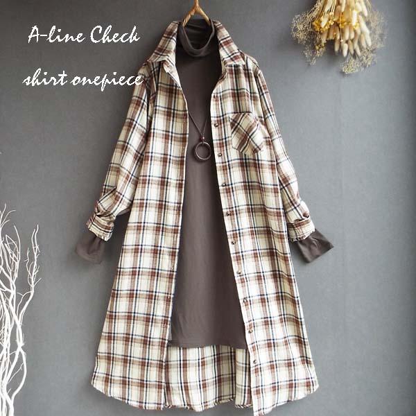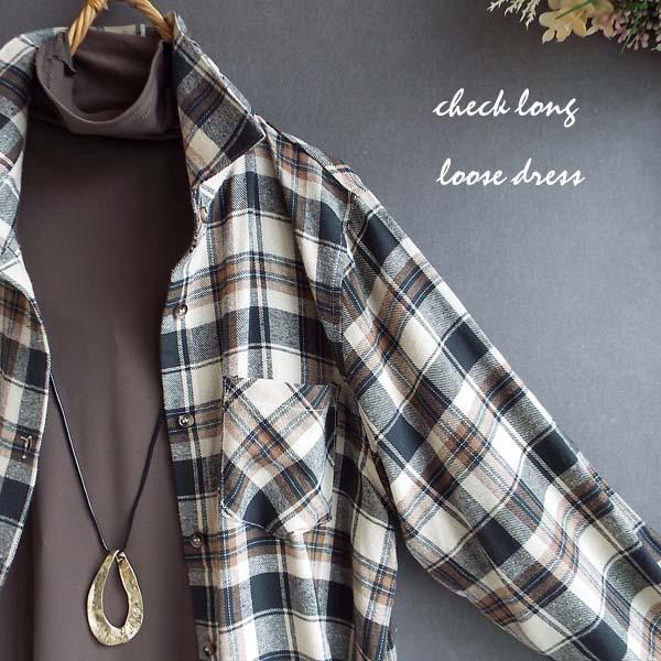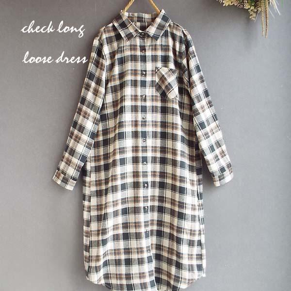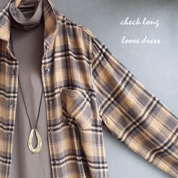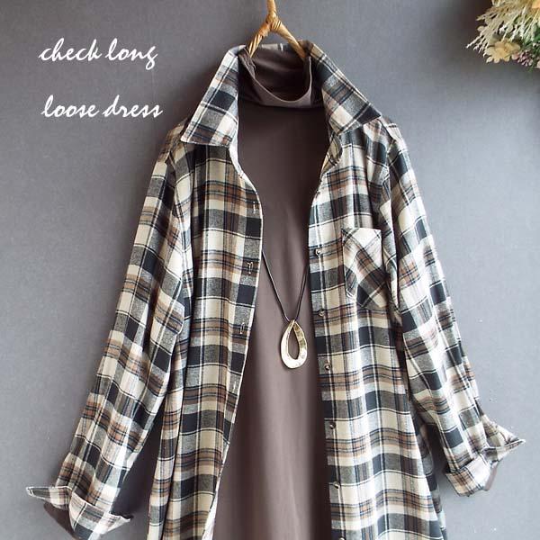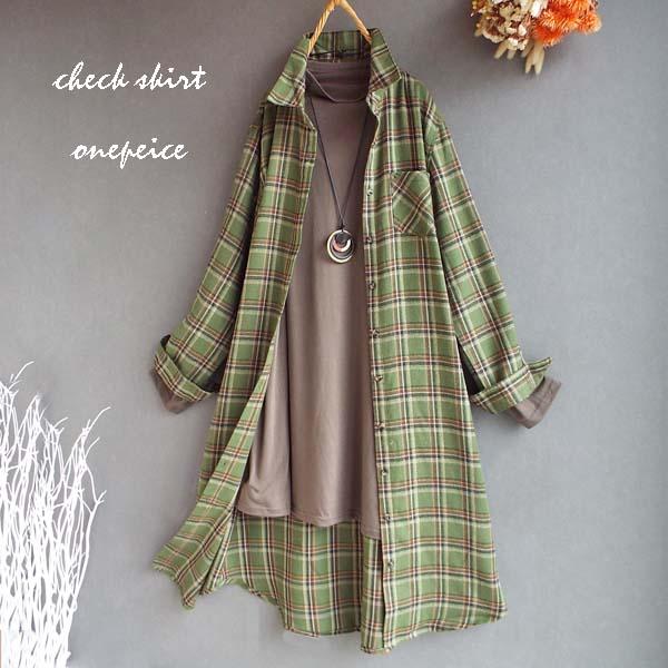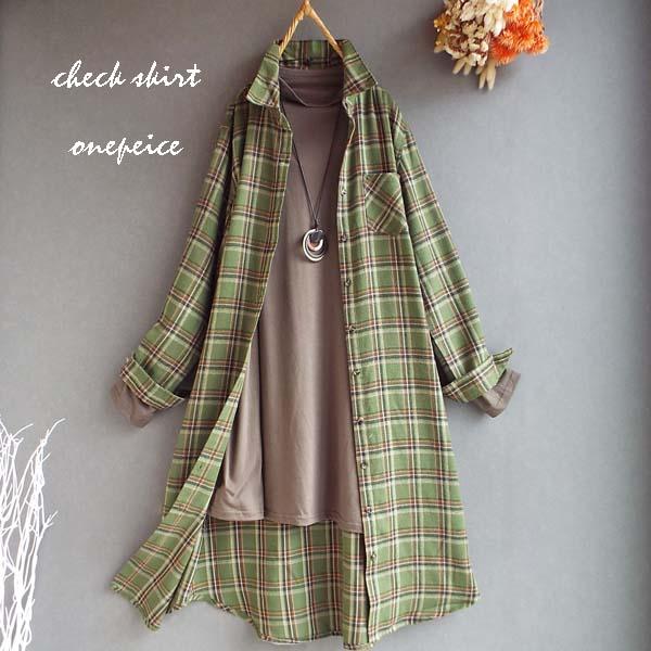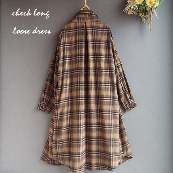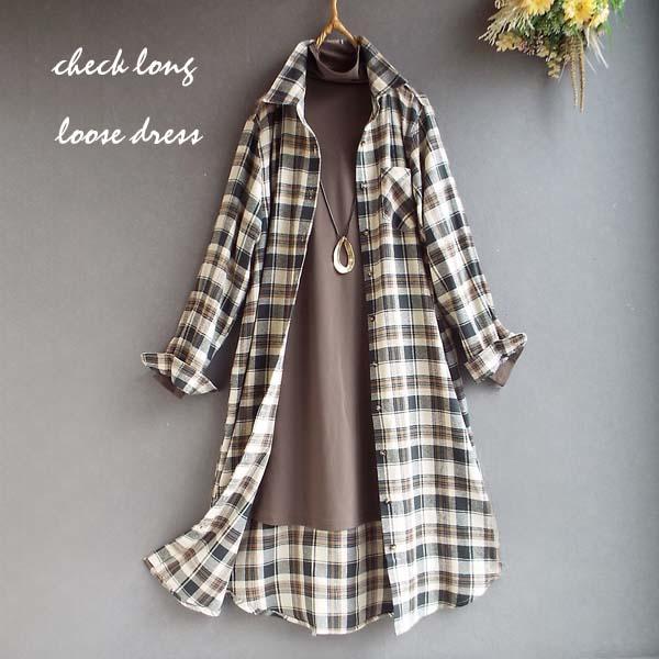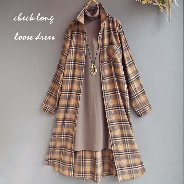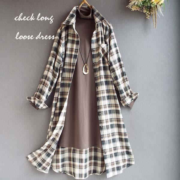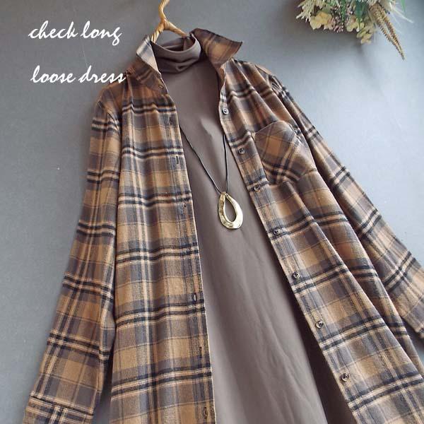 ワンピース ゆったり レディース アウター シャツ 羽織物 前開 チェック柄 起毛 大人 きれいめ 秋 冬 40代 50代 体型カバー s3563