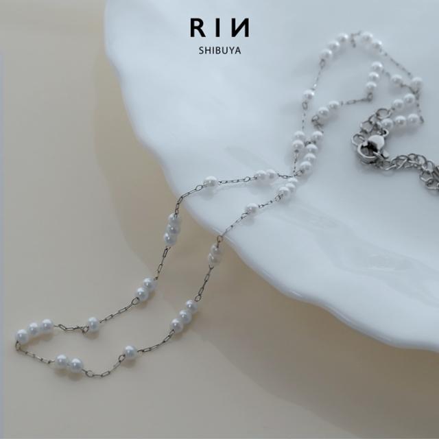 アクセサリー ビーズネックレス パール ビーズ かわいい キレイ 上品 おしゃれ サージカルステンレス チェーン 凛