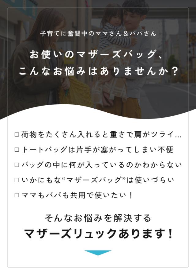 リュックタイプのマザーズバッグ。