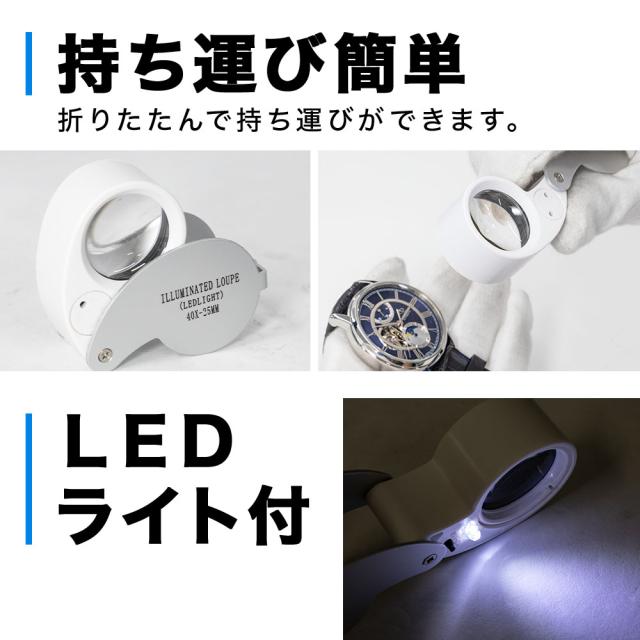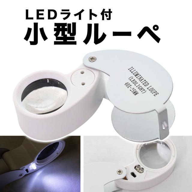 ルーペ 携帯 LED 拡大鏡 ジュエリールーペ ライト ライト付き 40倍 ケース入り 2種類 拡大 小型 宝石 ジュエリー 鑑定 読書 工作 修理 裁縫 校正 校閲 観察 昆虫 花 虫眼鏡 自由研究 微細品 精密作業 精密機器 時計