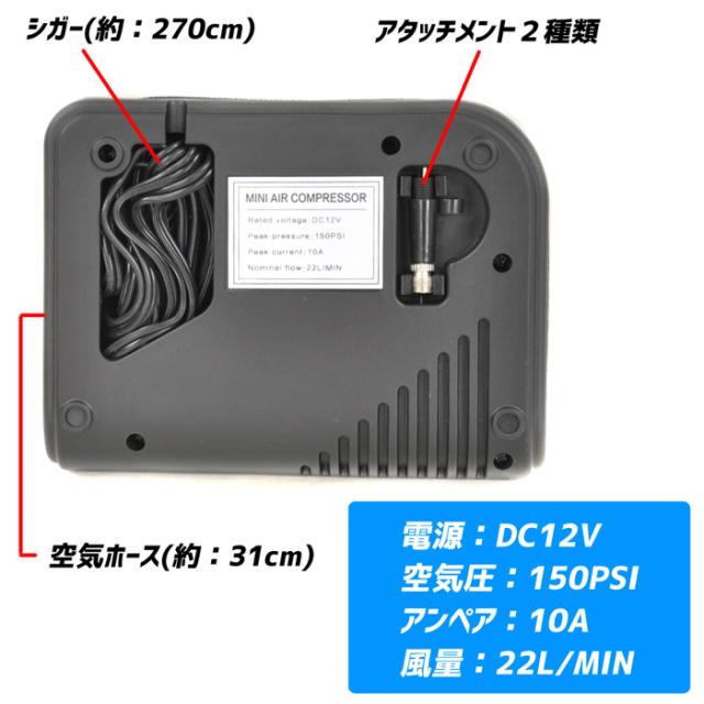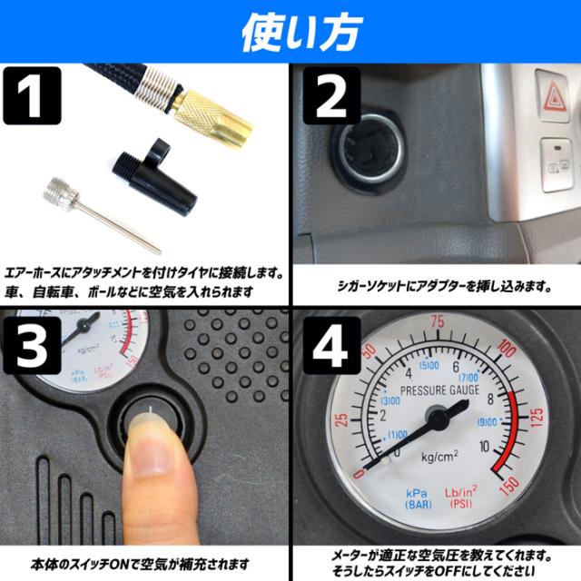 自動車 タイヤ 空気入れ 空気圧 エアーコンプレッサー チェック 持ち運び 小型 軽量 燃費 電動 メンテナンス エアコンプレッサー シガーソケット 車載 車用電源対応 車 バイク 自転車 浮き輪 ボール