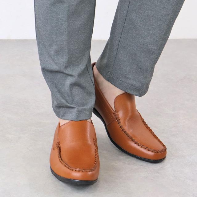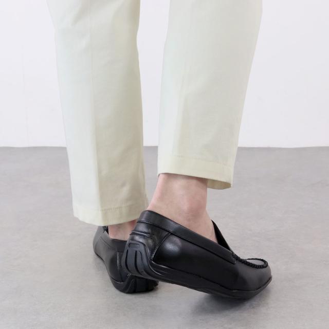 モカシン縫いのカジュアルさと、大人の品を感じさせるロングノーズのシルエットがポイント。