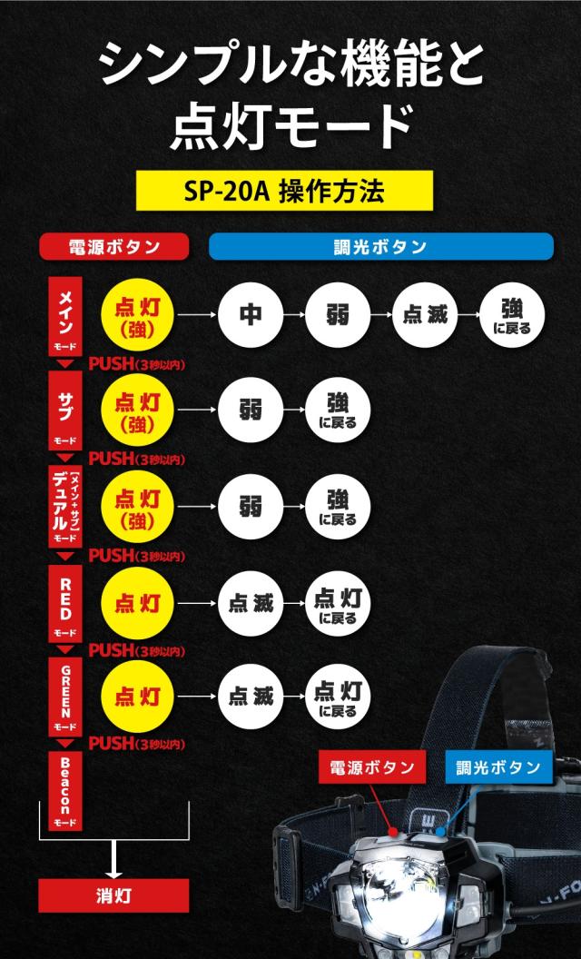 | 連続点灯 | メインモード強/20時間 ・中/70時間・弱/110時間 |