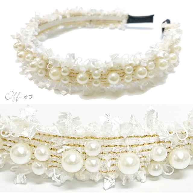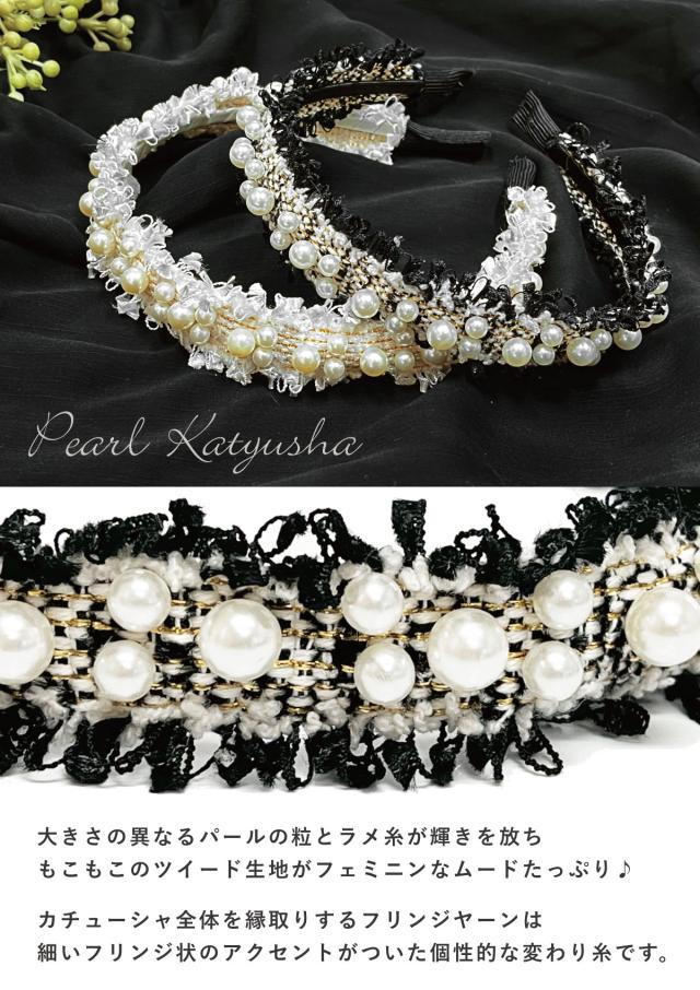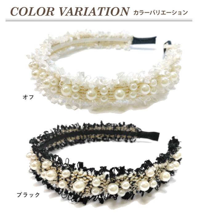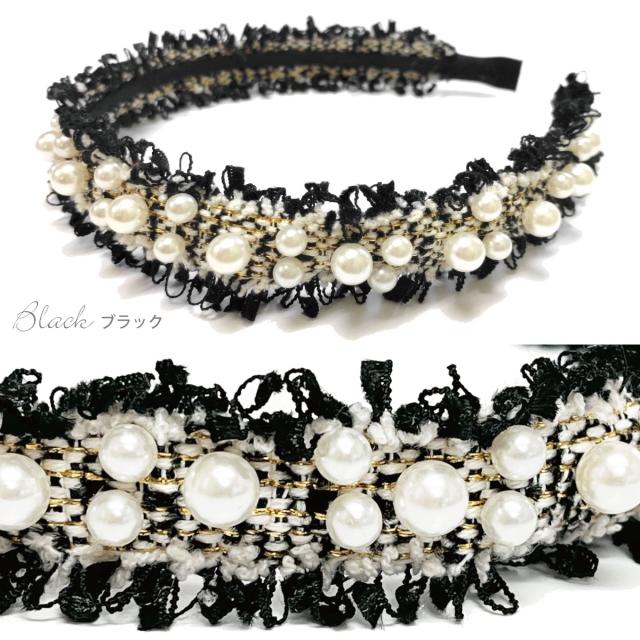 パールつき カチューシャ ツイード生地 ヘアバンド もこもこ 縁取り フリンジヤーン 白 黒 ha-505 メール便は送料無料 ヘアアクセ 秋 秋冬 痛くない レディース 大人 まとめ髪 フェミニン かわいい 結婚式 韓国 ファッション お洒落