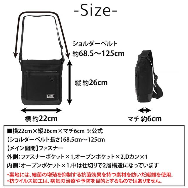 | 備考 | 【メイン開閉】ファスナー 【外側】 ファスナーポケット×1 オープンポケット×2 Dカン×1 【内側】 オープンポケット×1 メインルーム内は仕切りで2層構造になっています ■バッグ裏地抗菌加工について ・バッグの裏地には、細菌の増殖を抑制する抗菌効果を持つ素材を紡いだ繊維を使用しています。 ・抗ウイルス加工は、病気の治療や予防を目的とするものではありません。 ■注意 ・摩擦、水濡れ、汗の影響によって色落ちすることがあります。 ・汚れを落とす場合は、水や中性洗剤を使い固く絞った布で拭き取ってください。シンナー、ベンジンなどの有機溶剤の使用は色落ち、変色及びプリントや樹脂加工の剥がれなどの原因になります。 ・ご使用後はよく日陰干しをし、直射日光を避け風邪通りしの良い場所で保管してください。 キーワード: プレゼント ギフト ラッピング ラッピング無料 メンズ レディース 男性 女性 通勤 通学 ビジネス 学生 ブランド ポイント消化 ニューバッグワカマツ | ||