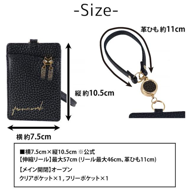 | サイズ(約) ※当店実寸値 | 横7.5cm×縦10.5cm ※公式 【伸縮リール】最大57cm (リール最大46cm、革ひも11cm) | ||