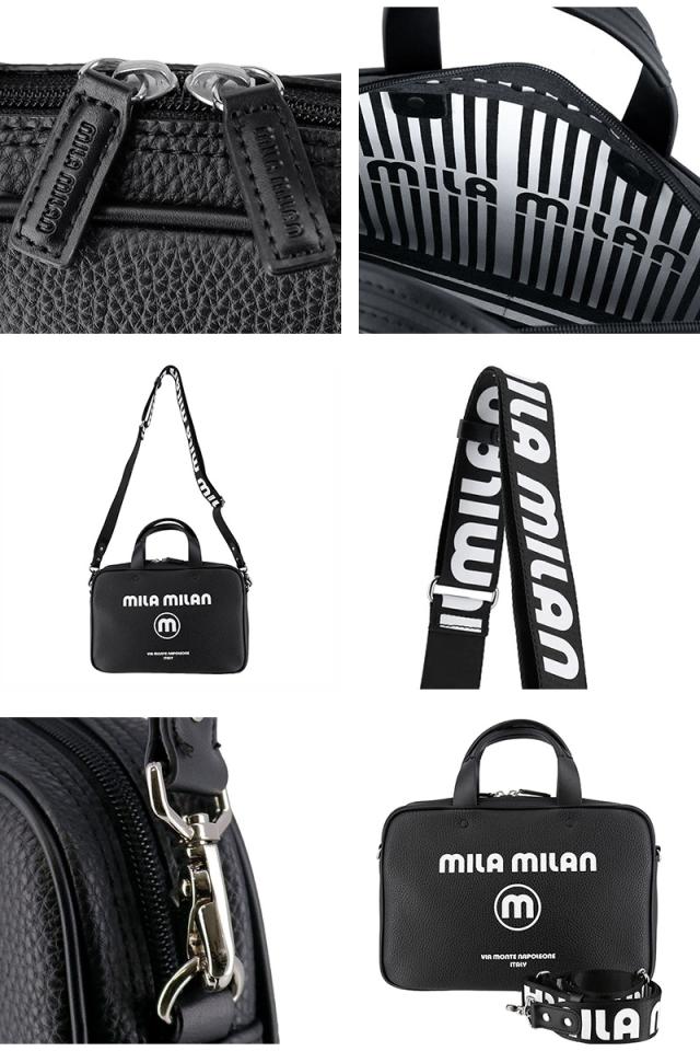 モノトーン調にブランドロゴがポイントのミラ・ミランのミニブリーフバッグ。