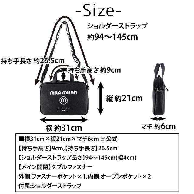 | サイズ(約) ※当店実寸値 | 横31cm×縦21cm×マチ6cm ※公式 【持ち手高さ】9cm 【持ち手長さ】26.5cm 【ショルダーストラップ】94〜145cm(幅4cm、取り外し可) | ||