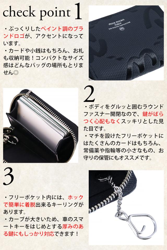 ミラ・ミラン 財布 カードケース キーケース ラウンドファスナー 3連 スマートキー対応 mila milan ミオ 255611 メンズ レディース レザー 牛革 P10倍 送料無料 誕生日プレゼント ギフト ラッピング無料 nwar