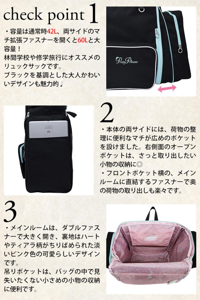 プリティプリンセス バッグ リュックサック バックパック 42L 60L Pretty Princess 林間学校 遠足 習い事 pp04 レディース キッズ ポイント10倍 送料無料 誕生日プレゼント ギフト プレゼント