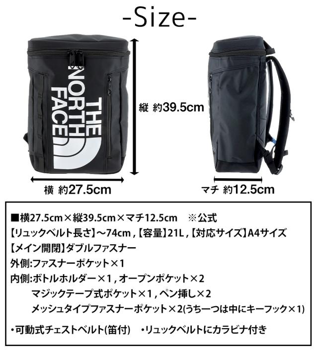 | サイズ(約) ※当店実寸値 | 公式サイズ 横27.5cm×縦39.5cm×マチ12.5cm 【リュックベルト長さ】〜74cm 【容量】21L 【対応サイズ】A4サイズ | ||