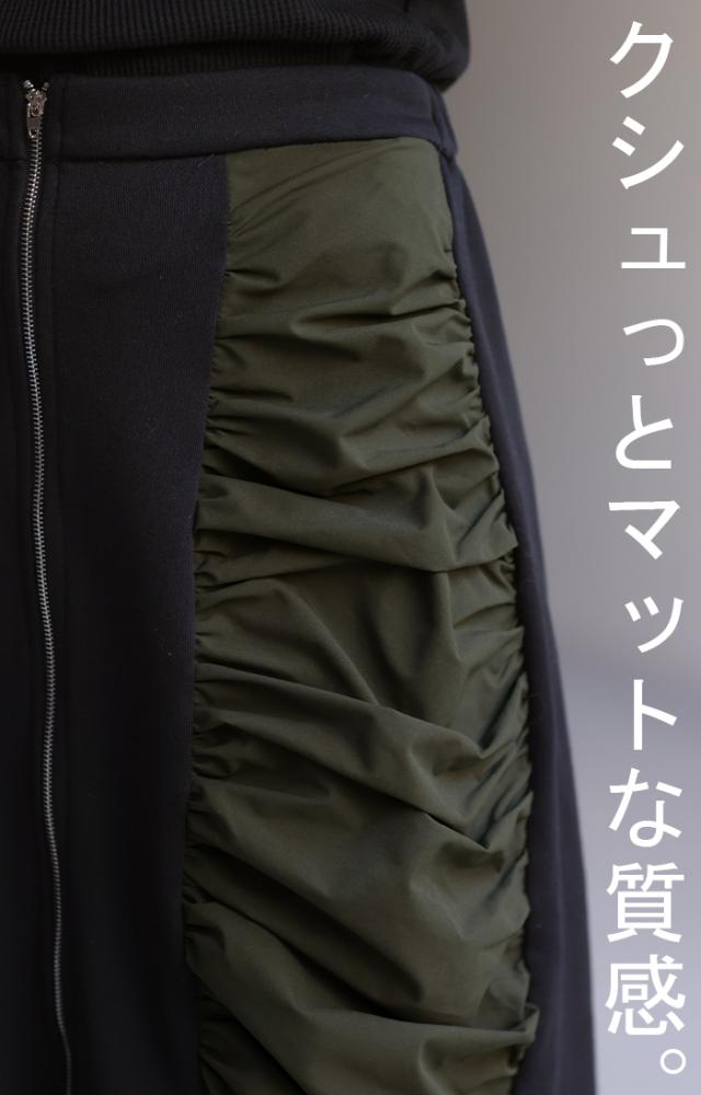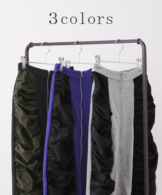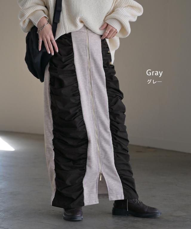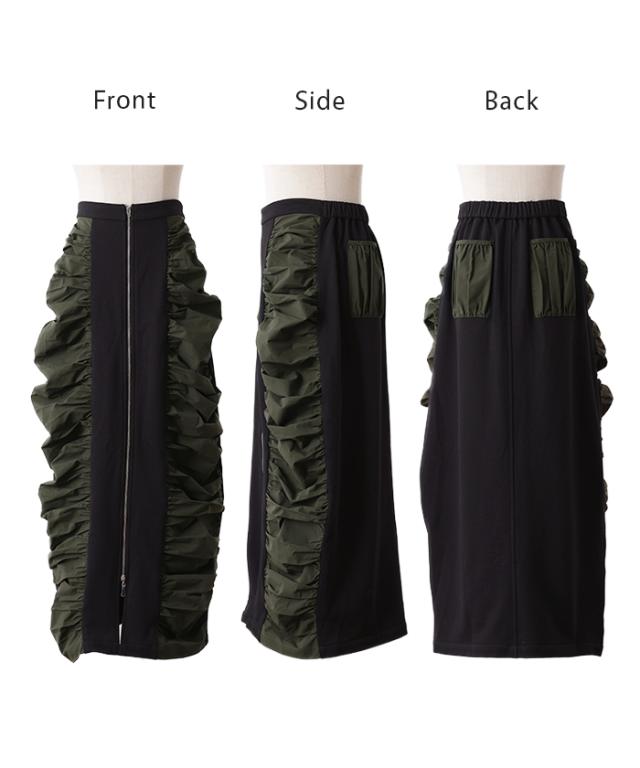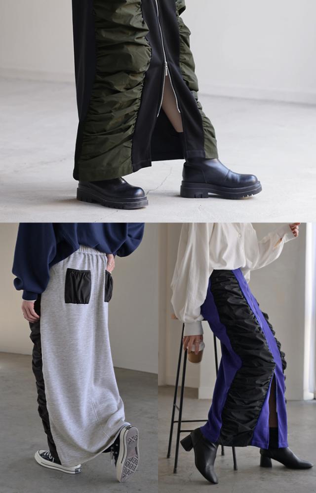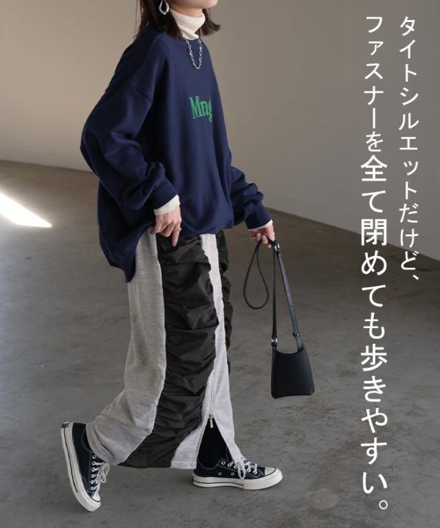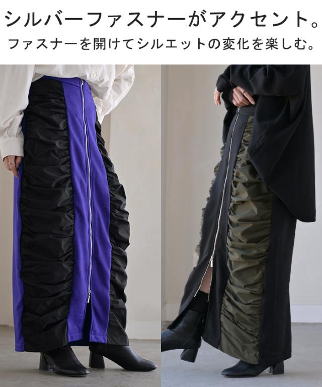 スカート サイド ギャザー タイトスカート レディース ボトムス 変形 ロングスカート マキシスカート スウェット 変形スカート ダブルジップ ストレート スリット ストレッチ ロング タイト ナロースカート ゴム カーキ 春 冬 HUG.U 秋新作