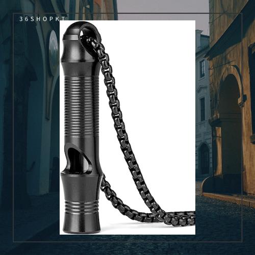 [TIMULTI] ホイッスル 笛 チタン製 緊急 危険防止 救急笛 防災用 アウトドア 登山 軽量 ネックレス付き (ブラック)