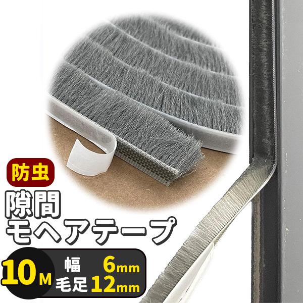 隙間テープ すきまテープ モヘアテープ 長さ10m 幅6mm 毛足12mm グレー 毛足長い 超ロングサイズ モヘアシール 虫よけすき間テープ 補修 ダクトテープ ドア 窓 戸当たり 防風 防音 防虫 網戸用 玄関 トイレ ドア用 窓用 サッシ用