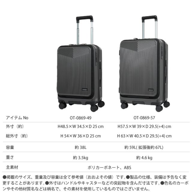 oltimo オルティモ スーツケース キャリーケース Mサイズ 59L 拡張 OT-0869-57