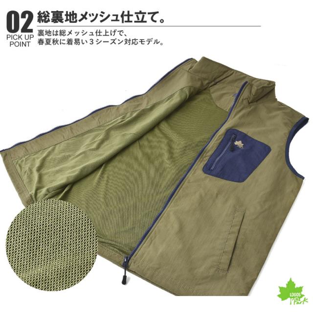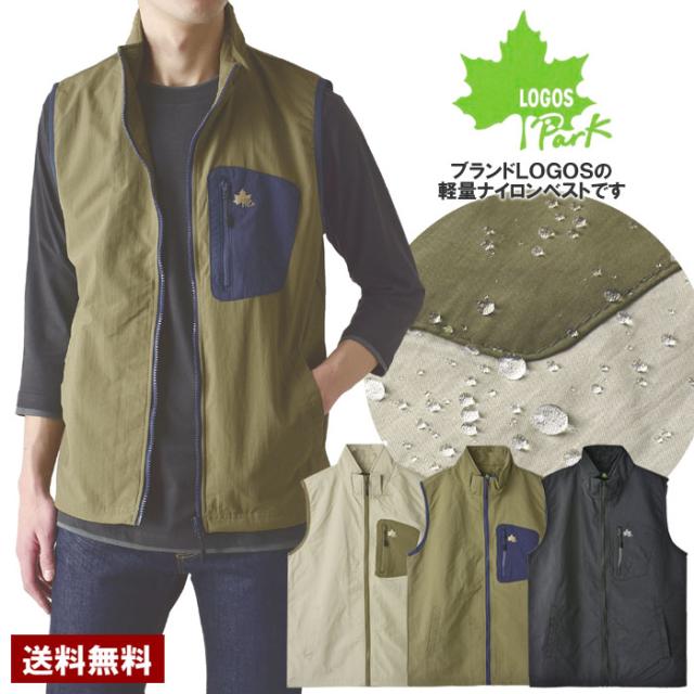 ロゴス LOGOSPark メンズ ナイロンベスト 撥水加工 メッシュ裏地 アウトドア 軽量 正規品【C5Z】【パケ1】