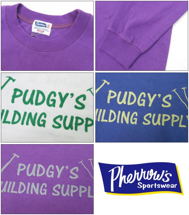 フェローズ PHERROW'S 長袖 Tシャツ プリント "PUDGY'S BUILDING SUPPLY" 24S-PLT3