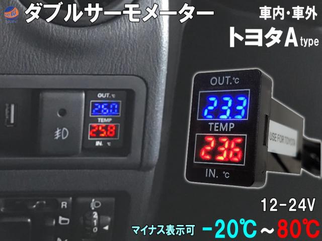LED ダブルサーモメーター 【メール便 送料無料】 車載 温度計トヨタ Aタイプ マイナス表示可能 寒暖計 スイッチホール 増設 LED 取付 車内 車外 外気温 内気温 スイッチパネル 温度測定 ダイハツ スズキ 汎用 サーモメーター インパネ 寒暖計パネル 温度センサー 車用 12V