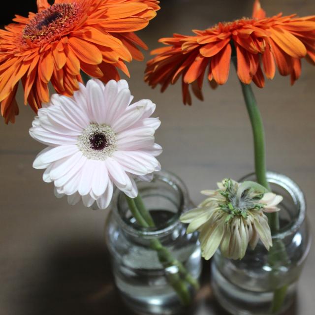 花水幸を入れていない花瓶のガーベラ(オレンジ)も、花弁が数枚、黒くなっています。