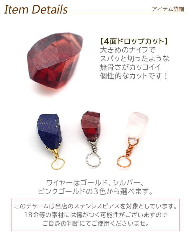 ピアス チャーム 付け替え ペンダントトップ 天然石 4面ドロップカット しずく型 【1個】 アクセサリー クォーツ ラピスラズリ ガーネット