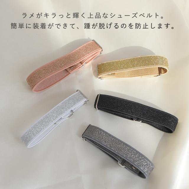 シューズバンド シューズベルト シューズストラップ おしゃれ パンプス バンド シューズ ミュール サンダル ストラップ ゴム ラメ サイズ調節 後付け パカパカ防止 かかと浮き防止 靴擦れ防止 靴 かかと 脱げ防止 可愛い 上品 華やか ブラック 黒 シルバー グレー ゴールド ピンク