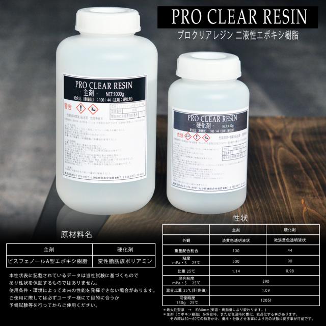 レジン エポキシ樹脂 プロクリアレジン 大容量 1440gセット 主剤 1000g 硬化剤 440g レジン液 プロ クリア DIY レジンアクセサリー レジンアート 2液性レジン レジンテーブル エポキシレジン 業務用 ハード 送料無料