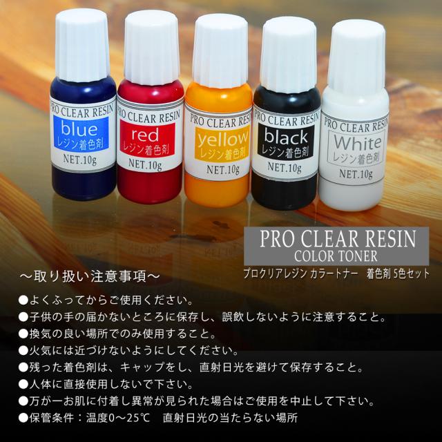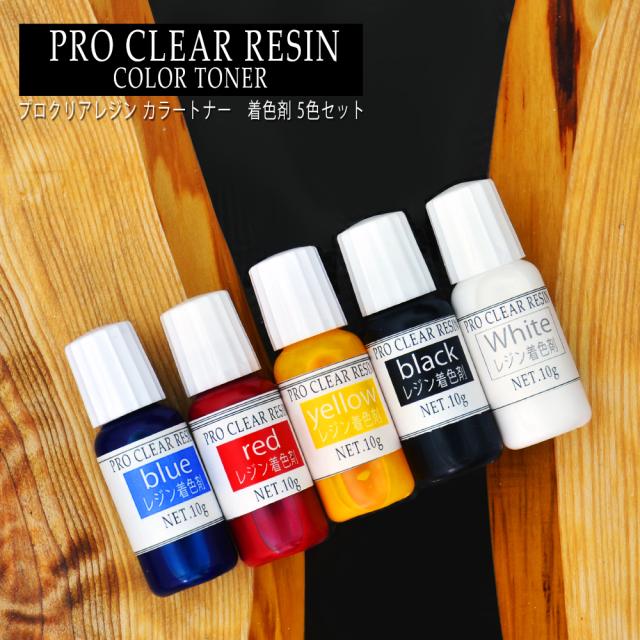 レジン プロクリアレジン 着色料 カラートナー 着色剤 10g 5色セット 着色 ホワイト 白色 レッド 赤色 ブルー 青色 イエロー 黄色 ブラック 黒色 レジン用 着色材 カラフル 染料 エポキシ 送料無料