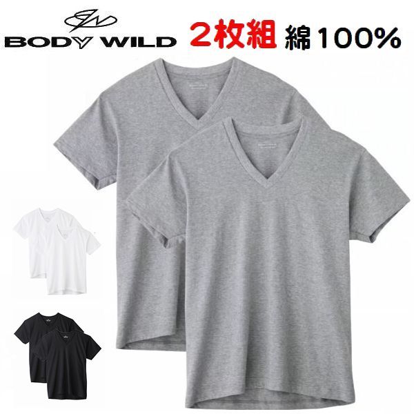 2枚組 Tシャツ 半袖 V首 ボディワイルド 無地 カラー 紳士 メンズ 綿100% 抗菌防臭加工 グンゼ おすすめ BW5015 5025