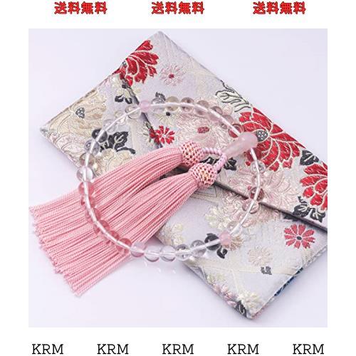 LEOBEE 女性用数珠 マグネット式数珠袋付き 念珠 じゅず 葬式 葬儀 法事 念誦 全ての宗派で使用頂け 水晶 落ち着いたピンク プレゼント