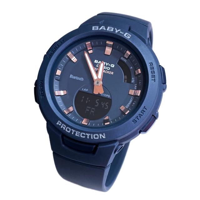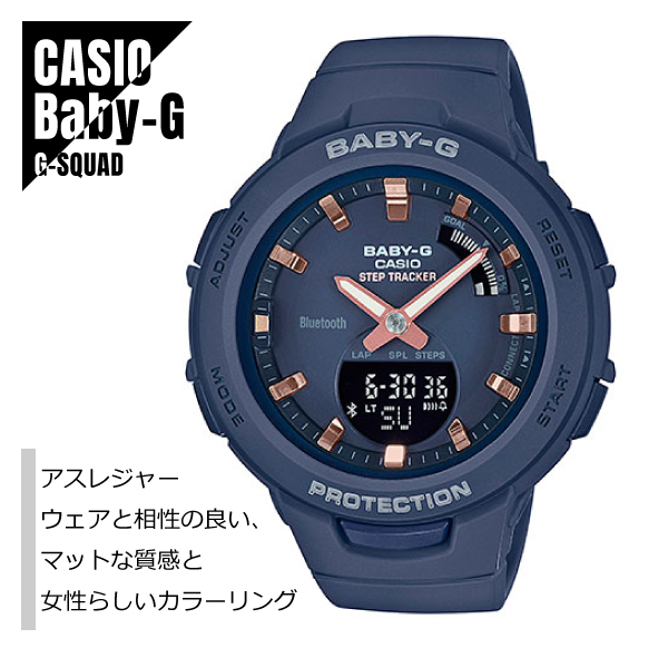 国内正規品 CASIO カシオ Baby-G ベビーG G-SQUAD ジー・スクワッド スマートフォンリンク 歩数計測 BSA-B100-2AJF ネイビー 腕時計 レディース