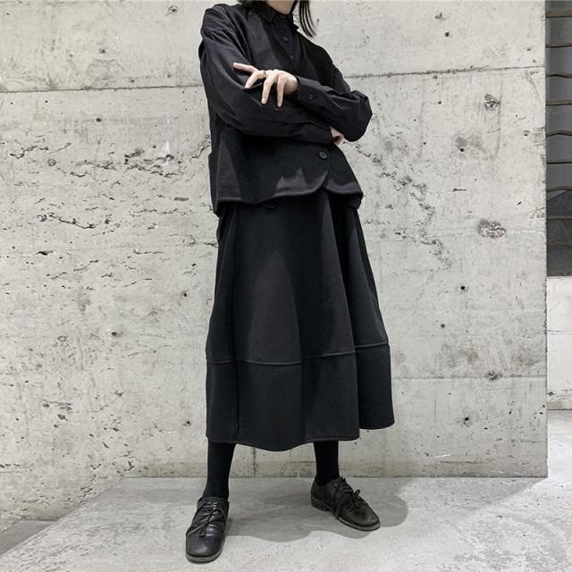 スカート モード系 ロングスカート 個性的 Aライン ミドル丈 レディース フリル ボトムス きれいめ 黒 ロング丈 アンブレラスカート つぼみスカート 大人 韓国ファッション 春 秋 冬