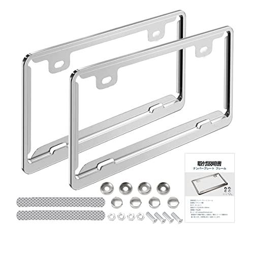 SODOI 2枚セット ナンバープレートフレーム フロント リア ステンレス鋼 メタリック 防錆 普通車 軽自動車に適用 車外用品 シルバーメッ